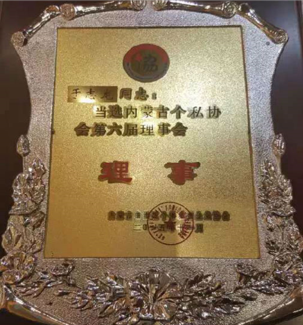 6、2015年11月15日,公司董事长于志龙当选为第六届内蒙古个体私营企业协会理事会理事。