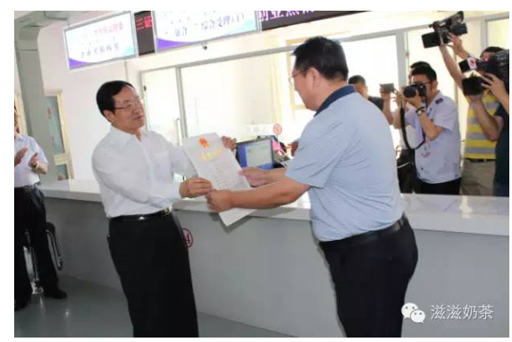 3、2015年6月2日,在赤峰市政务服务中心,赤峰多维尔生物工程有限公司董事长于志龙在内蒙古自治区政府副主席常军政手中领取了自治区第一张“三证合一”营业执照。