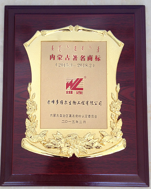 2、2015年3月25日,在呼和浩特举行的内蒙古著名商标评审会议上,我公司“维连商标”被评为内蒙古著名商标,至此我公司已有两个商标被评为内蒙古著名商标。
