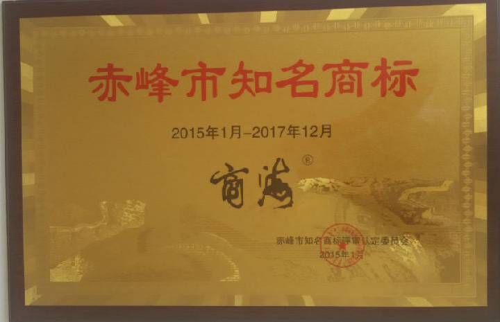 1、2015年1月,公司“商海”商标被赤峰市工商局评为赤峰市知名商标。