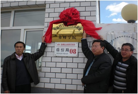 2.2010年3月26日,赤峰学院生命科学系徐振军主任代表学院为我公司授予实习实验基地铜牌,公司董事长于志龙和学院徐振军主任为铜牌揭幕。